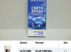 Лампа светодиодная 24V T15 6 диодов SMD белая (BA15s) (P21W) Упаковка 10шт (МАЯК) (500)