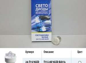 Лампа светодиодная 24V T15 9 диодов LED белая (BA15s) (P21W) Упаковка 10шт (МАЯК) (500)