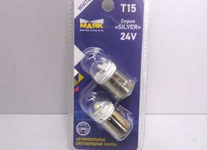 Лампа светодиодная 24V T15 6 диодов SMD белая (BA15s) (P21W) Silver 220Lm (2835) блистер 2шт (МАЯК)